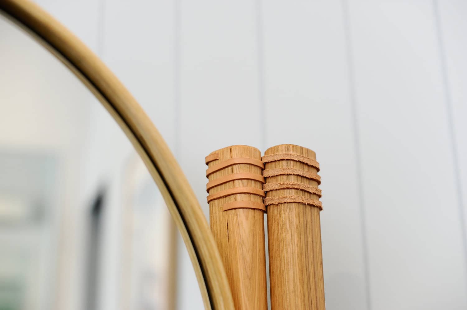 In the meantime, Darren has made the space his own by painting strong gray focal walls, hanging art, and adding plenty of plant life. After a stressful day he finds comfort in styling his home and moving items around to create different vignettes. The open bookshelf in his living room is beautifully curated and includes vintage video cameras and photography equipment that used to belong to his father.